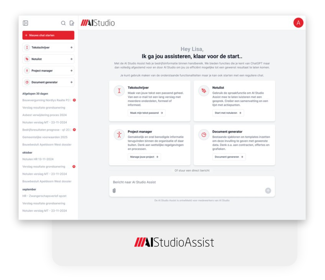 AIStudio Assist is een platform dat naadloos aansluit op je organisatie.