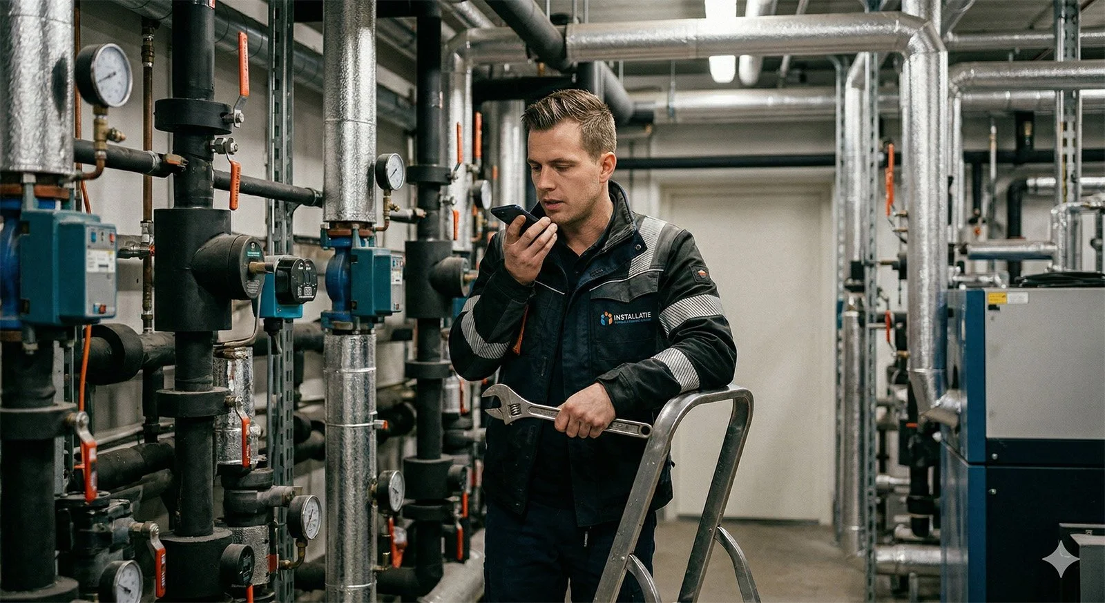 Medewerkers moeten werkbonnen invullen terwijl ze bij klanten zijn, vaak op lastige plekken. Volledige registratie is essentieel, maar administreren is bijzaak. Even snel inspreken via de telefoon en alles zit meteen in het systeem, volledig en in de juiste terminologie.